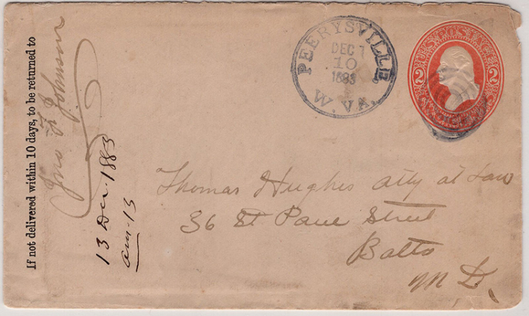 U.S. #U227 Perrysville, W. Va. Cds 1883